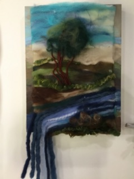 This 9"x 12" piece is made with yarn and wool roving. It is soothing and peaceful. FREE shipping in USA